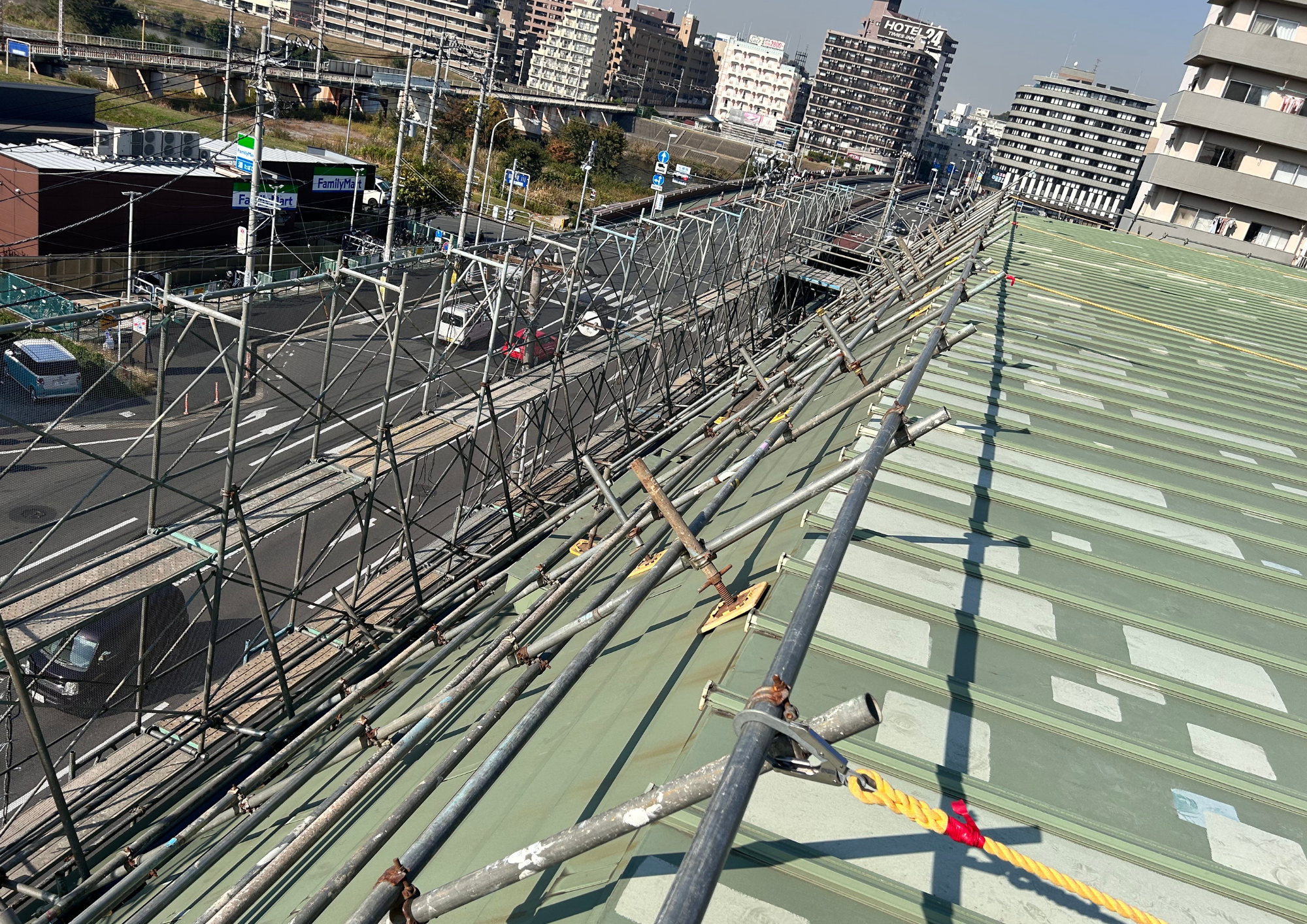 屋根足場は急勾配の屋根工事に必要な施工方法で、安全確保に欠かせません。現場に合わせた足場を組立・解体し、信頼できる会社として工事を支えます。
